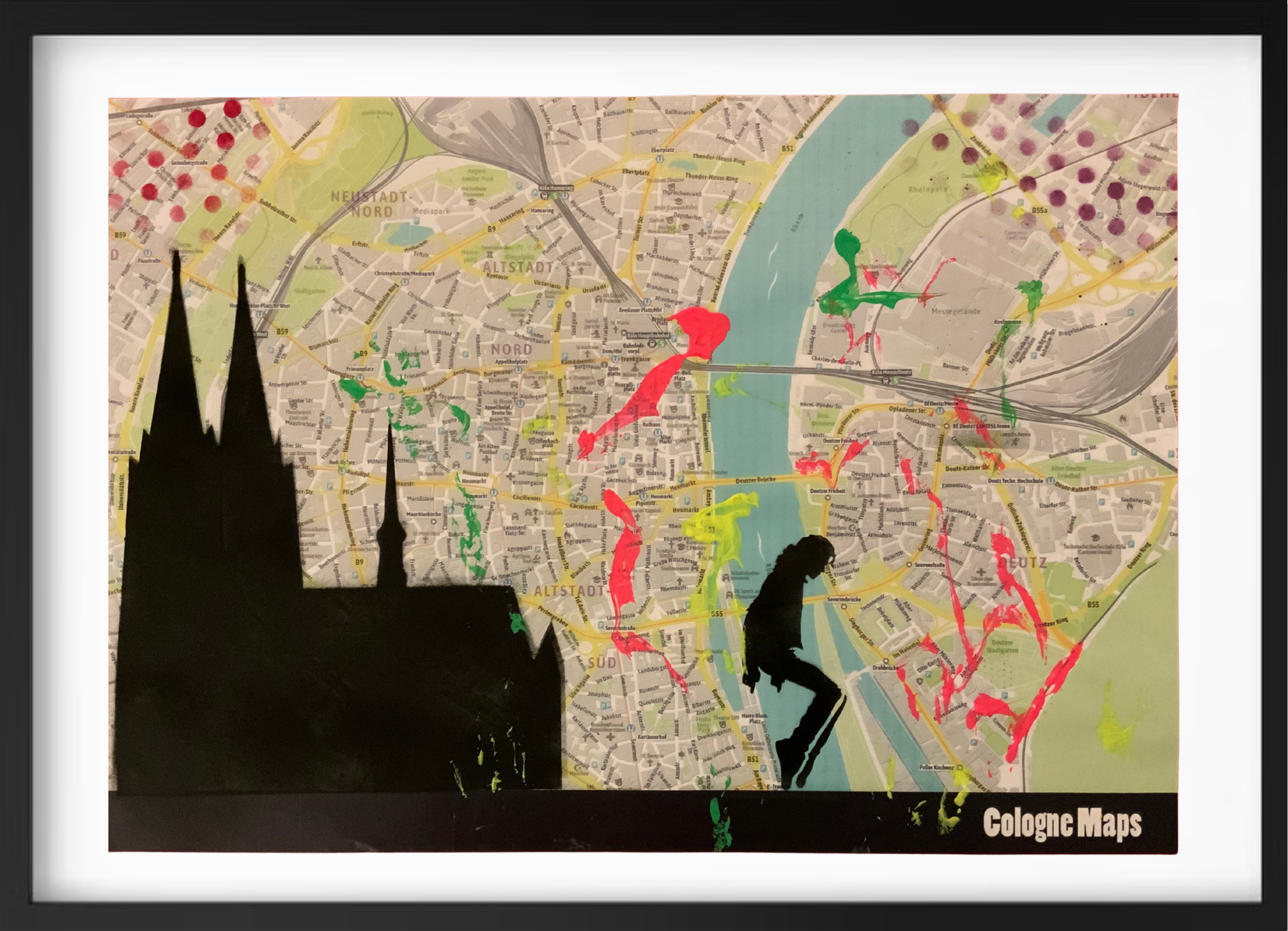 Jede Art City Map ist ein handgefertigtes Unikat, das die Energie und das Lebensgefühl einer Stadt einfängt. Die ausdrucksstarke Komposition entsteht auf einem hochwertigen Stadtplan und wird von internationalen Künstlern individuell bemalt, besprüht oder grafisch veredelt. Präsentiert im eleganten Rahmen (70 x 50 cm) mit Passepartout, wird das Kunstwerk zum stilvollen Blickfang in jedem Raum – und zum echten Statement für urbane Kultur.